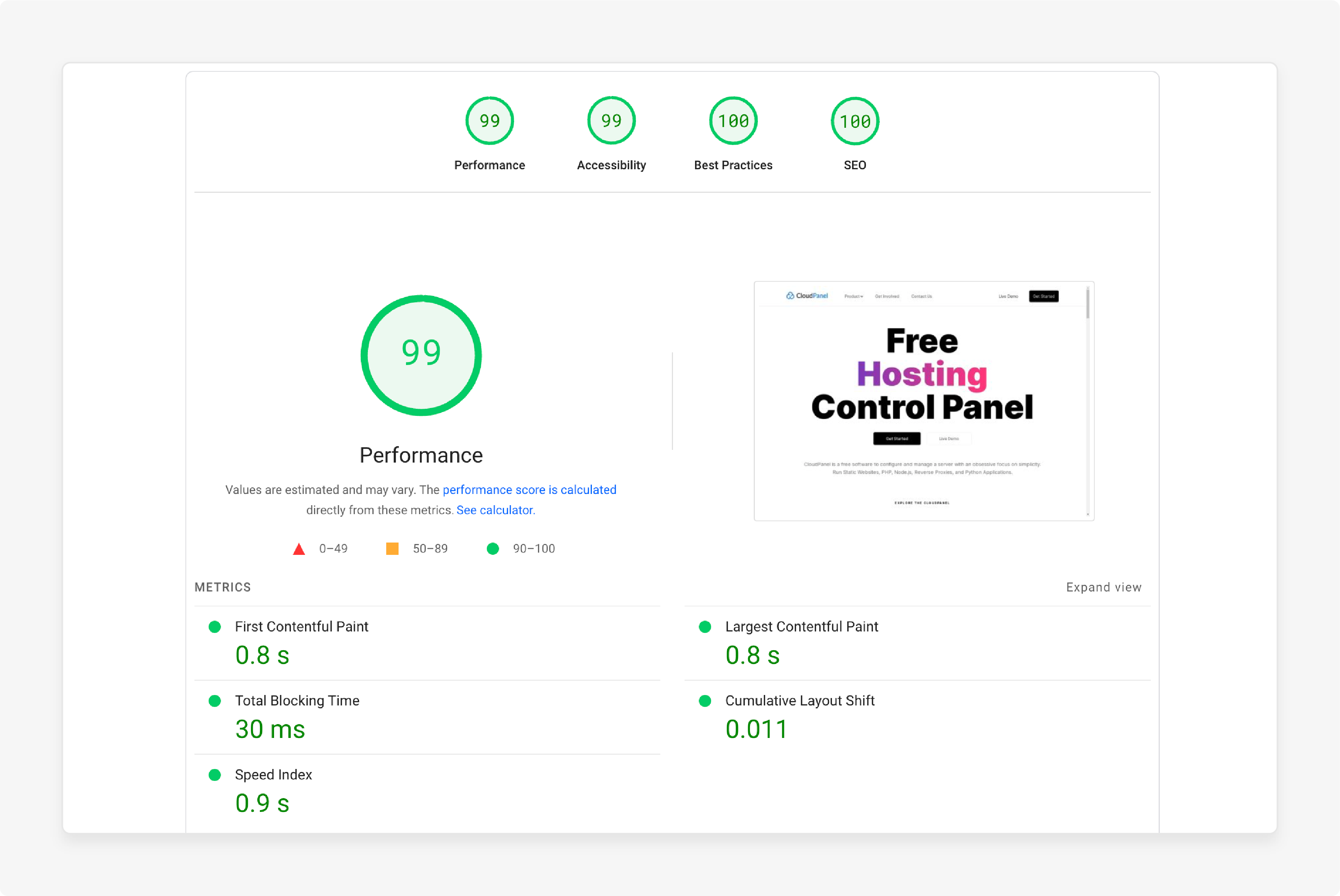 Optimize your website's core web vitals with CloudPanel and elevate your platform's SEO ranking.