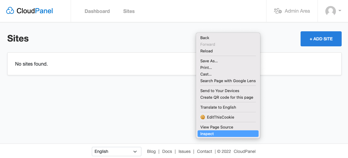 To check the CloudPanel performance, use the Google Chrome Browser, log into CloudPanel and click on Sites.